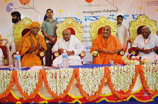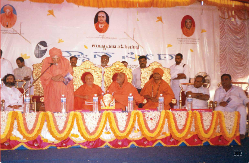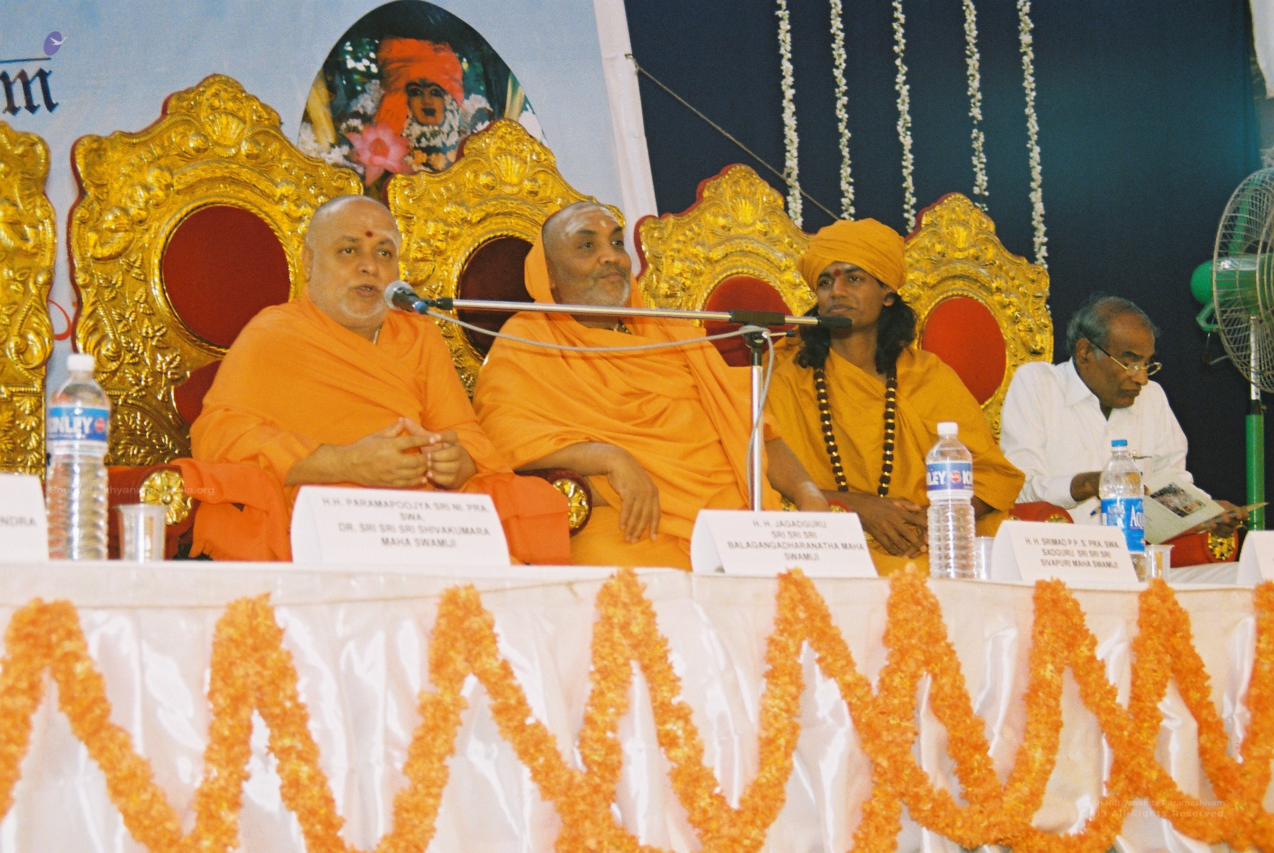 Religious Confluence Honored Guests Parampoojya Śri Shivakumara Swamiji, Śri Balagangadharanatha Swamigalu His Holiness Śri Shivapuri MahaSwamiji, Śri S.M Krishna, the Honourable Chief Minister of Karnataka
