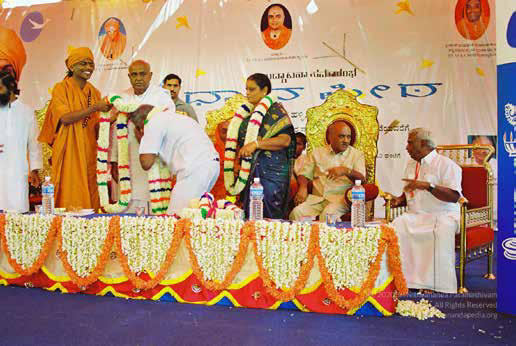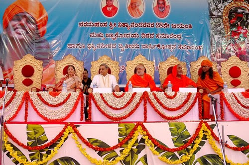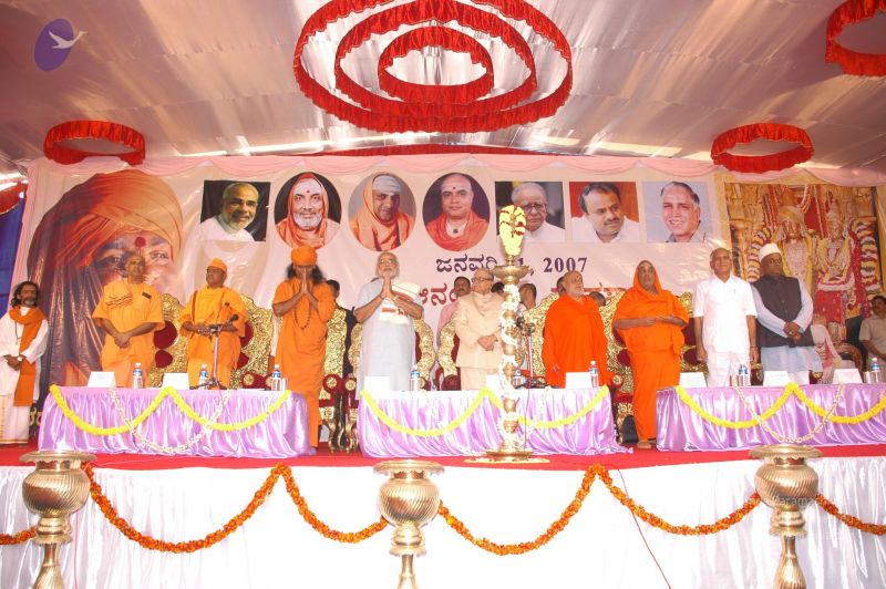 In the occasion of the Jayanti celebrations of His Divine Holiness at Adi Kailasa Nithyananda Peetham, gracing the occasion are seen Srimad Swami Ragaveshanandaji Maharaj of Sri Ramakrishna Mutt, Belgaum and Srimad Swami Veethabhayanandaji Maharaj of Sri Ramakrishna Mutt, Bangalore, Swamiji, Sri Narendra Modi, Chief Minister of Gujarat, India, Sri T.N. Chaturvedi, Honourable Governor of Karnataka, Jagadguru Sri Sri Sri Balagangadharanatha Maha Swamiji, Srimad Paramahamsa Parivrajakacharya Sachidanda Pranava Swaroopa Sadguru Sri Sri Sri Sivapuri Maha Swamiji, Sri B.S.Yediyurappa, Honourable Deputy Chief Minister of Karnataka, Sri Katta Subramanya Naidu, Minister for Large and Medium Scale Industries, Karnataka
