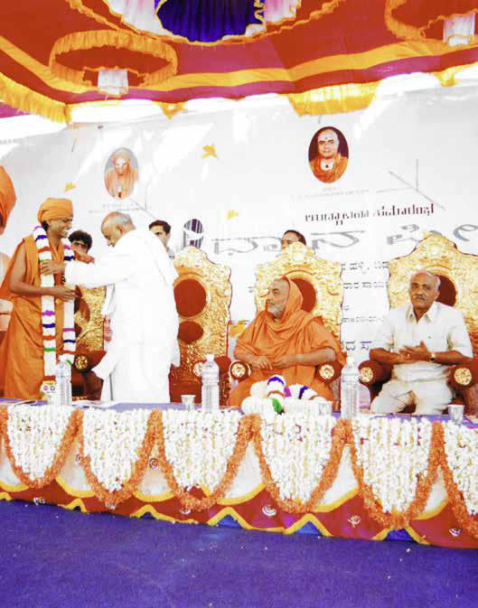 Religious Confluence Honored Guests Parampoojya Śri Shivakumara Swamiji, Śri Balagangadharanatha Swamigalu His Holiness Śri Shivapuri MahaSwamiji, Śri N. Dharam Singh, the Honourable Governor of Maharashtra