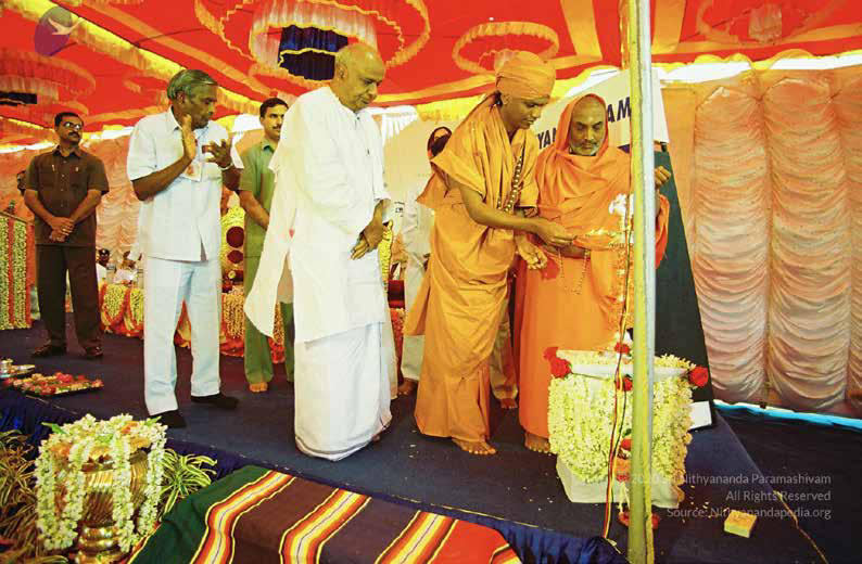 This spiritual headquarters would evolve into the Nation of KAILĀSA and the epicenter in which The SPH would revive Sanātana Hindu Dharma. With just 25 years of age, The SPH already had a colossal impact nation wide, recognized by both political and spiritual leaders: • Shri Balagangadharanatha Swamigalu, Head of the Adichunchungiri Mahasamsthana Mutt – a mutt 2000 years in existence • His Holiness Śri Śri Śri Shivapuri MahaSwamiji of the famous Omkara ashrama Mahasamsthana • Shivakumara Swamiji of Siddhaganga Matha • Śri S.M Krishna, the Honourable Chief Minister of Karnataka who was in office at that time and guest of honor • Śri H.D Deve Gowda, the former Prime Minister of India. These political leaders and VIPs showed their support of The SPH by attending not only the grand inauguration of Adi KAILĀSA Sarvajnapeetha but also the subsequent Jayanti celebrations of the SPH annually