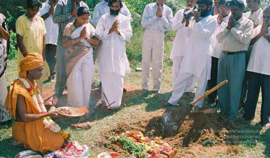 The SPH performing the ritual for laying the first bricks, that would commence the construction on the land of AKSJP